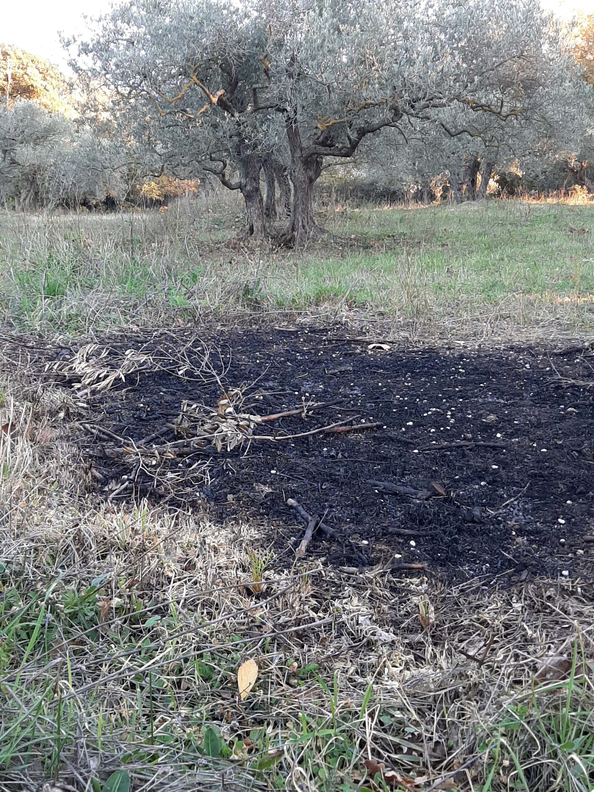 A l’automne au moment de la récolte de l’olive, le bois de taille des oliviers brûlé génère une pollution grave en CO2 et autres composants contenus dans les feuilles et les rameaux de l’olivier.